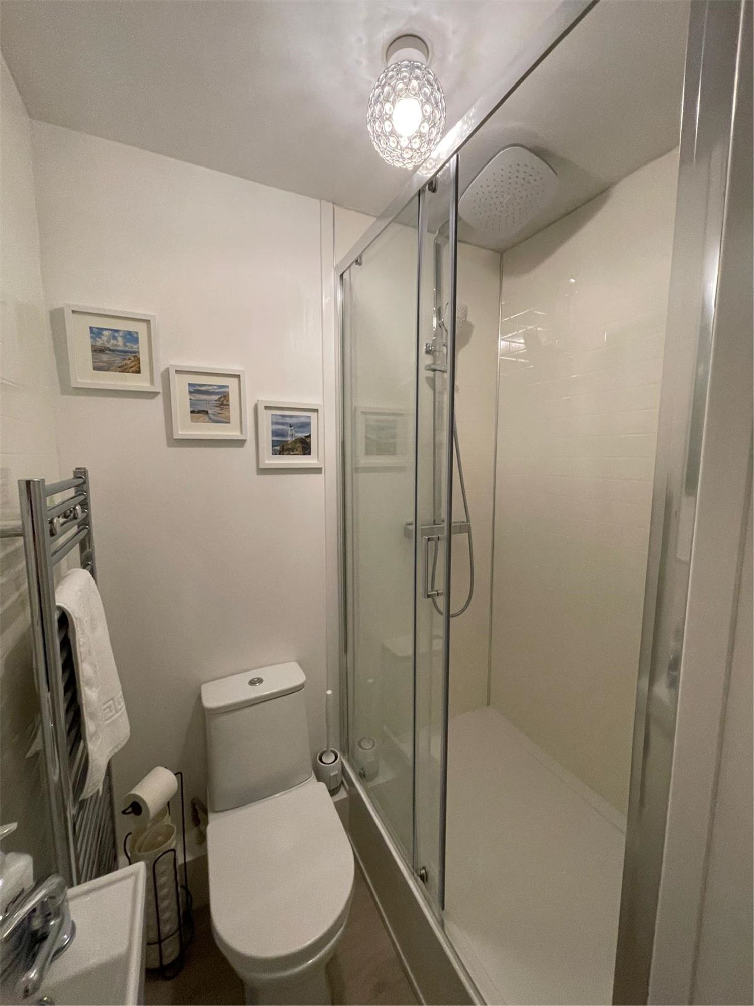 It has a spacious double bedroom with ensuite shower room. The second bedroom has full sized bunk beds. There is a large family bathroom with shower over the bath.